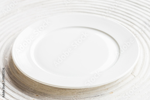 White plate on white wood background