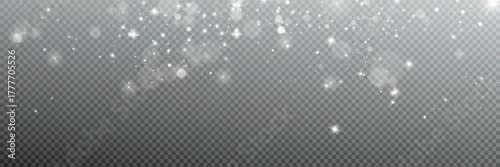White png dust light. Bokeh light lights effect background. Christmas background of shining dust Christmas glowing light bokeh confetti and spark overlay texture for your design.