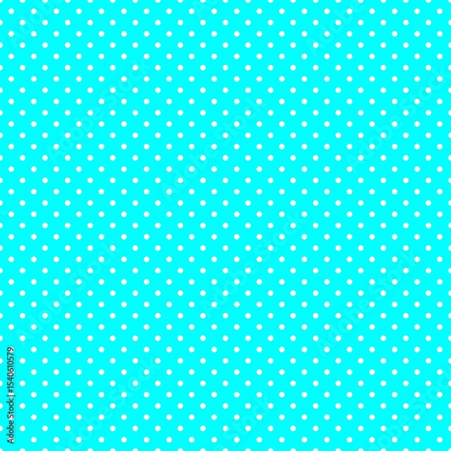 White polka dot seamless pattern on cyan background with soft repeating dots