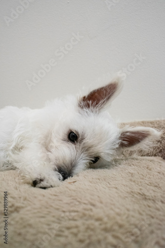 white puppy sitting on bed - Westie playing sleeping cute dog pet terrier