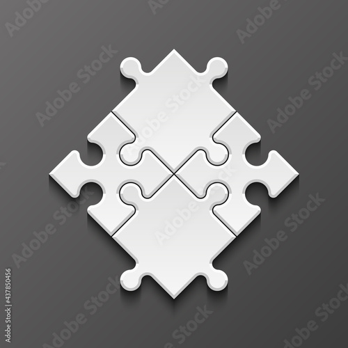 White Puzzle four piece business presentation. Square infograph. Circle 4 Step process diagram card. Section compare service banner. 3d Abstract Background
