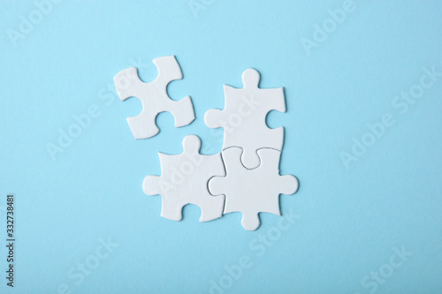 White puzzle on a colored background top view.