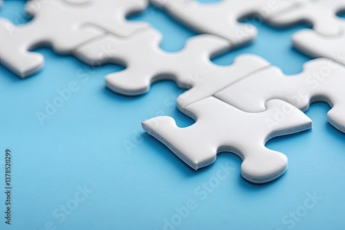 White puzzle pieces on a light blue surface