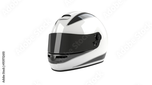 White Racing Helmet With Black Visor and Stripes