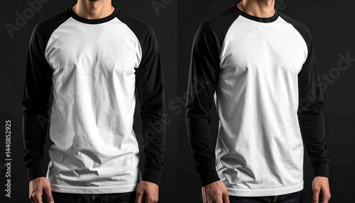 White Raglan T Shirt Black Sleeves Walking Pose Side View