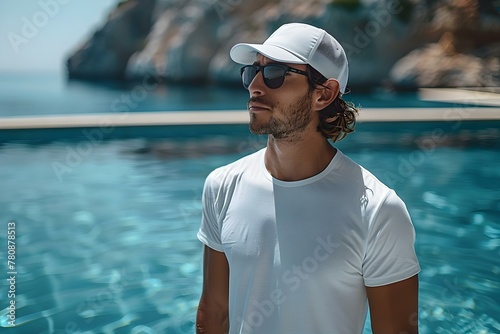 White rash guard shirt with UV protection for swimming. Concept Swimwear, UV Protection, Rash Guard Shirt, White Color, Outdoor Activities