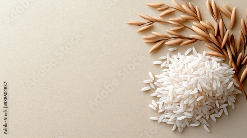 White Rice with Grains on Clean Background