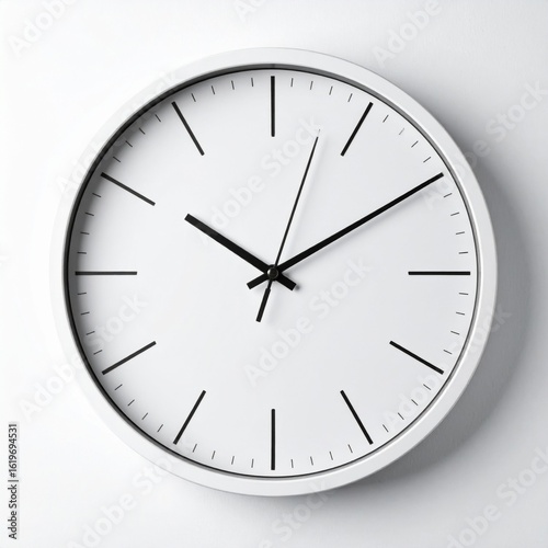 White Round Minimalist Wall Clock Telling Time Against a White Background