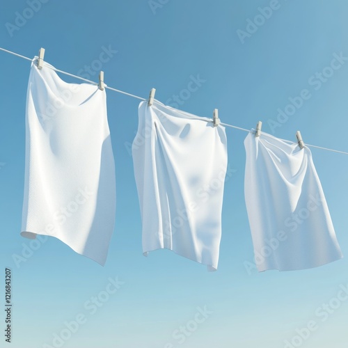 White sheets drying on clothesline, sunny day, clear sky, laundry day