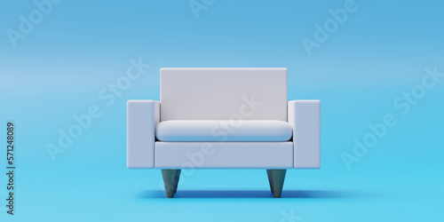 White single seat sofa with armrest isolated on blue background. Front, ad template space. 3d render
