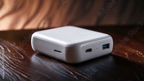white smartphone charger placed on a wooden table