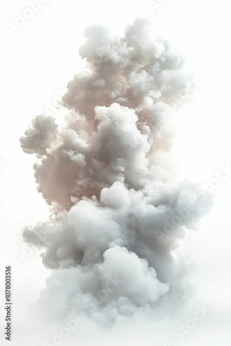 White smoke billows against white background.