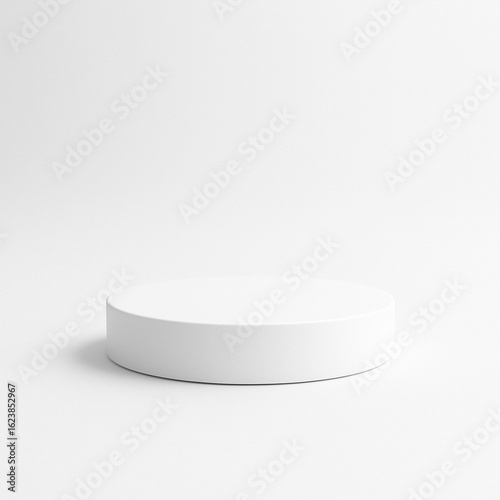 White, smooth 3D podium stands with soft shadows. Minimalist design creates product showcase, mockup template for branding, presentations.