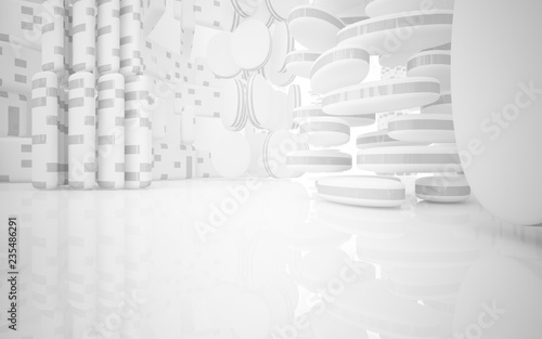White smooth abstract architectural background whith gray lines . 3D illustration and rendering