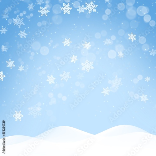 White snowflake with bokeh backgrounds on blue backgrounds in Christmas Holiday with copy sapce , illustration