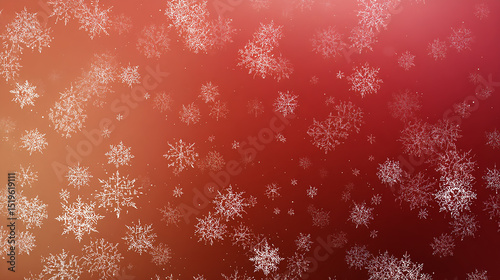 White snowflakes cascade against a gradient red backdrop creating a wintery scene