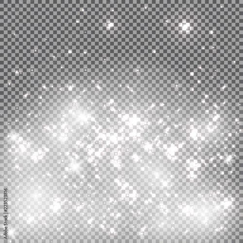 White sparks glitter special light effect. Vector sparkles on transparent background. Christmas abstract pattern. Sparkling magic dust particles