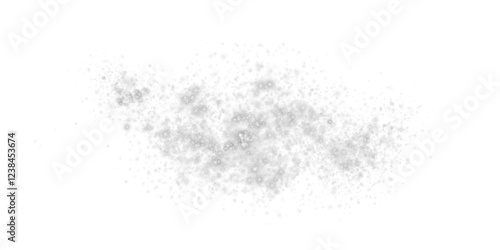 White sparks of dust and white stars shine with special light. Christmas light effect. White sparkling particles of magic dust. PNG.