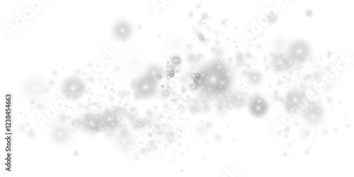 White sparks of dust and white stars shine with special light. Christmas light effect. White sparkling particles of magic dust. PNG.