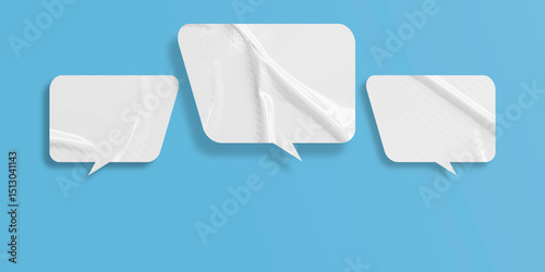 White speech bubble crumpled paper isolated on light blue background