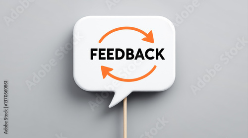 white speech bubble with circular arrows signifying feedback