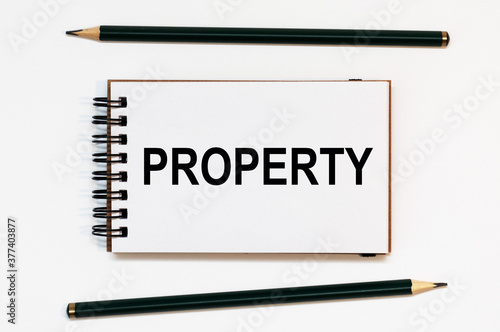 WHITE SPIRAL NOTEBOOK, TWO PENCILS WITH TEXT PROPERTY