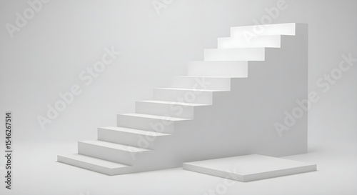 White, Steps, Stairs, White Steps and Platform - Minimalist 3D Render