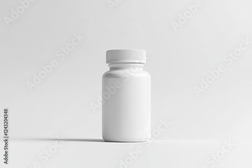 White supplement bottle mockup, front view, white background, high resolution, no text or logo on the label, no shadows, no shading.