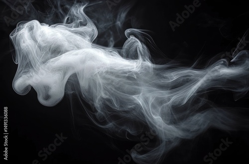 White swirling smoke billowing and twisting gracefully against a dark black background creating a mysterious and ethereal atmosphere