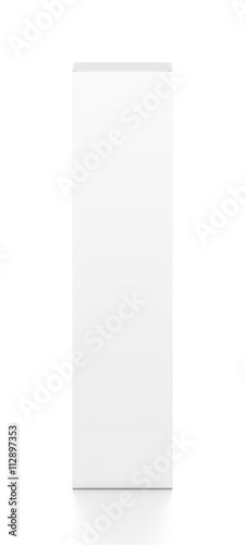 White tall thin vertical rectangle blank box from top front angle. 3D illustration isolated on white background.