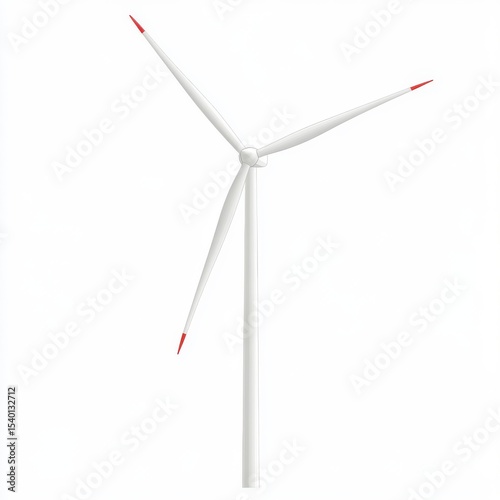 White Three Bladed Wind Turbine with Red Tips Against White Background