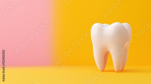 White tooth model on colorful background for dental health, education, and hygiene in minimalist style
