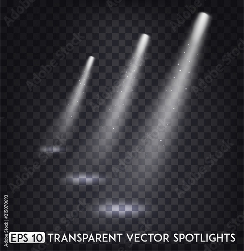 White Transparent Vector Spot Lights / Spotlights Effect For Party, Scene, Stage,Gallery or Holiday Design