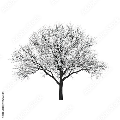 White Tree on Black Background: Isolated Spring Blossom Illustration