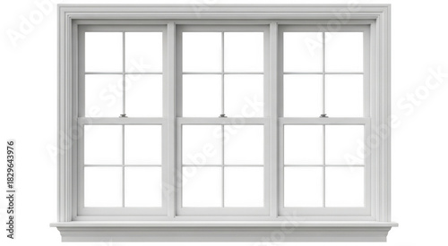 White triple sash window with multiple panes and classic architectural frame isolated on transparent background png
