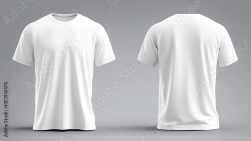 White T-shirt template, front and back view, isolated on a grey background