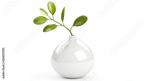 White Vase with Fresh Greens Against White Background