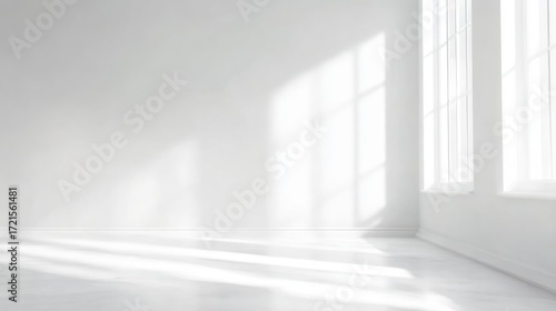 White wall background with blurred leaf shadows, perfect for minimalist interiors, websites, and serene visuals