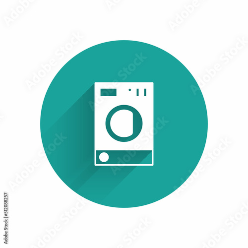 White Washer icon isolated with long shadow background. Washing machine icon. Clothes washer - laundry machine. Home appliance symbol. Green circle button. Vector