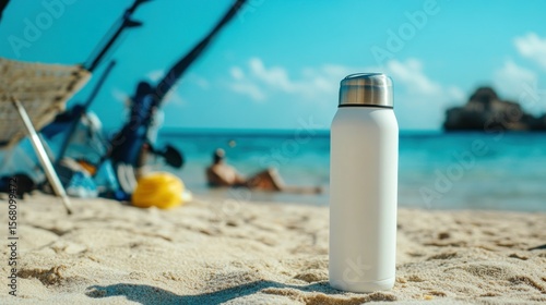 White water bottle on a sunny beach