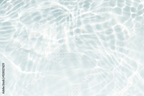 White water with ripples on the surface. Defocus blurred transparent white colored clear calm water surface texture with splashes and bubbles. Water waves with shining pattern texture background.