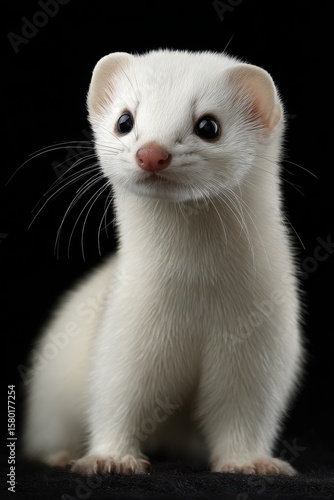 White Weasel. Small Cute Weasel Standing in a Charming Posture
