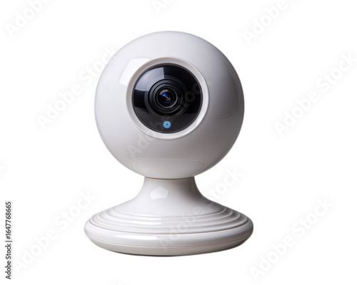 White webcam photo object isolated on transparency background, modern spherical design, glossy finish, technology device for video call, security, or streaming, minimalistic style