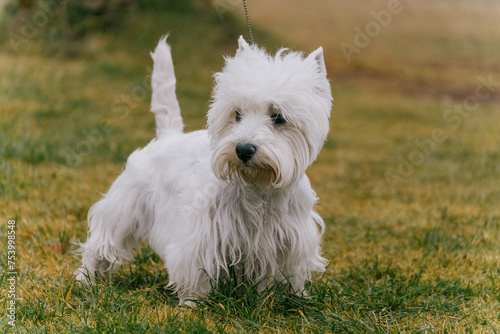 White west highland terrier dog among plants