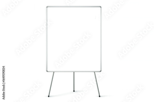 Whiteboard with aluminum frame and tripod stand isolated on transparent background, ideal for presentations and mockups