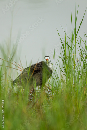 White-breasted Waterhen Standing in Dense Wetland Marsh Vegetation