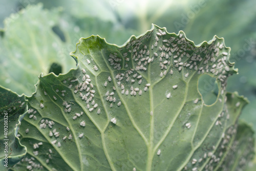 Whitefly Aleyrodes proletella agricultural pest on cabbage leaf
