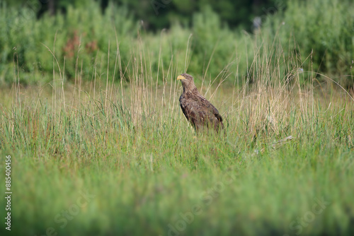 White-tailed eagle against the background of dried grass
