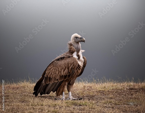 White-tailed eagle in flight and a zoo vulture are powerful raptors, brown, black, and white birds of prey and scavengers of wildlife