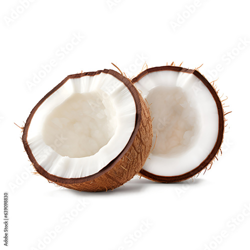Whole and half coconut slice isolated on transparent background, png